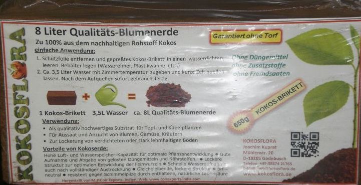 Kokosflora ca. 500g für ca 6 Liter Pflanzerde